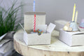 - Material: Terrazzokuchen, handbemalt mit Geburtstagskerze, Konfetti und Papieranhänger