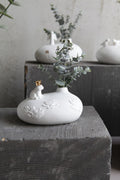 Geschichtenerzähler. Diese Blumensteine aus feinem unglasierten Porzellan erzählen wundervolle, kleine Geschichten von Zuhause und der Welt. Immer ein Platz für ein Blümchen.